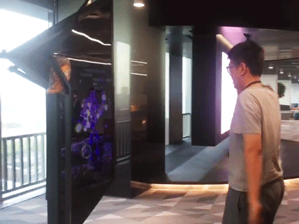 △透明的圆形会议室还可以变身为投射屏