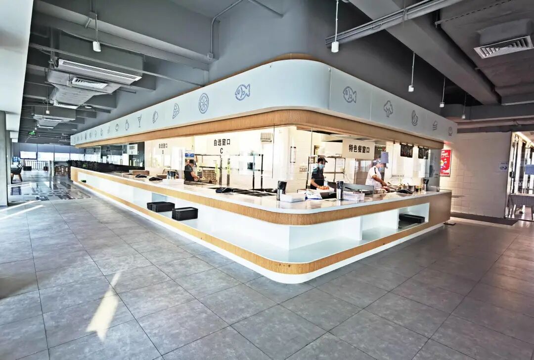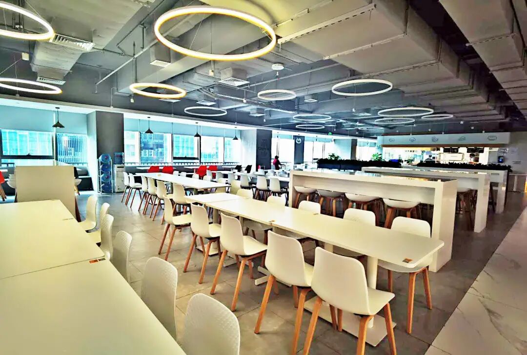 虎牙总部位于广州市番禺区的时代E-PARK,「承包」了其中的一栋,为了减少电梯运载的负担所带来效率低下,减少员工时间浪费,他们特将餐厅设在中间层。