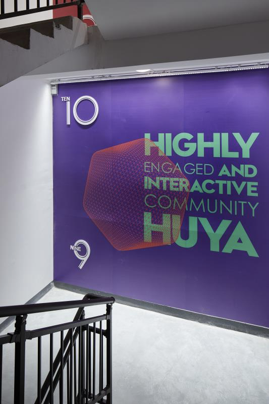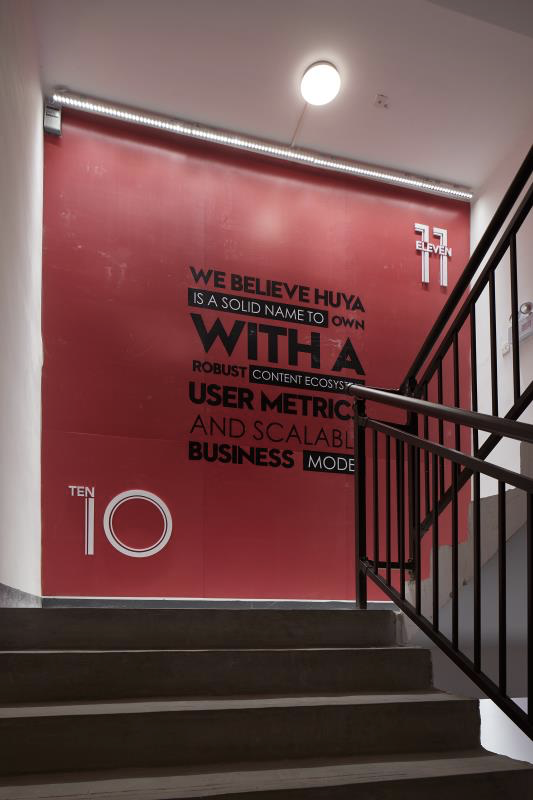 鼓励大家多运动,也方便工作一天恨不得「饿狼扑食」补充能量的员工,虎牙将楼梯间进行色彩改造,打造有意思的百米冲刺垂直运动。