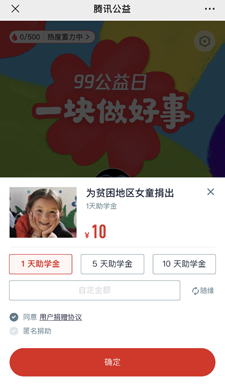 “99公益日”是由腾讯公益联合众多公益组织、知名企业、明星名人、顶级创意传播机构共同发起的一年一度全民公益活动,它的知名度越来越高,越来越多的企业也参与其中,依据自身的能力和特点选择各式主题,来贡献一份力量。