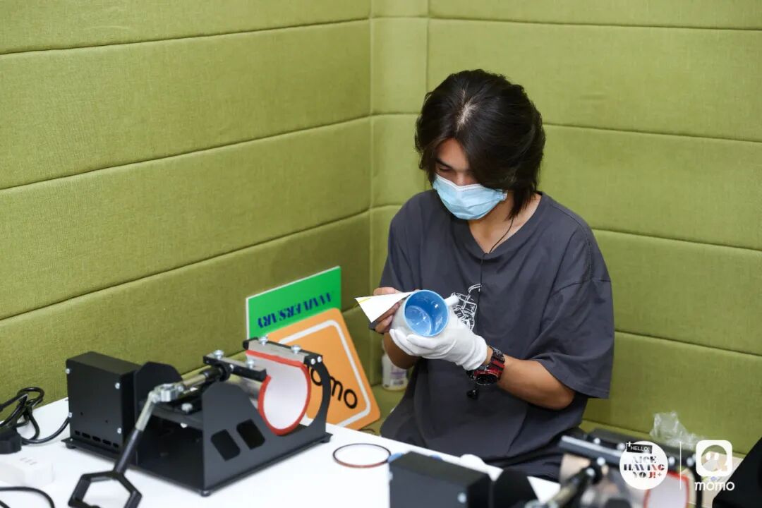 在热转印区,DIY爱好者和有DIY心思没DIY手艺的人能同时找到自己的快乐:通过H5抽奖获得DIY衣服、环保袋、马克杯的机会,挑选自己喜欢的活动icon现场印刷。