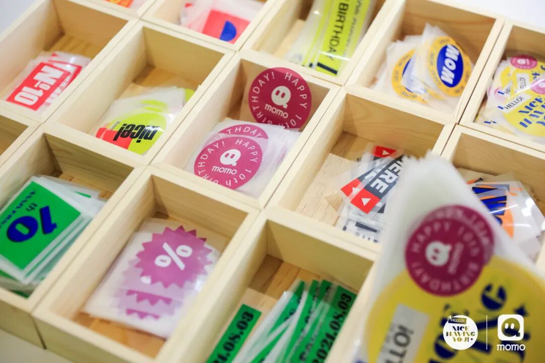 所以一走进陌陌十周年活动现场,我们就能看见很多「10」、「hello」、「momo」等关键词元素的装饰,不仅加深了大家对品牌调整的印象,缤纷的色彩还寓意着未来企业员工一起走花路!