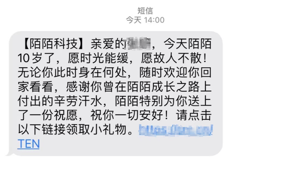连离职员工他们也有考虑到,不仅给每位离职人发送了短信,还准备了精美的10周年主题小礼物~