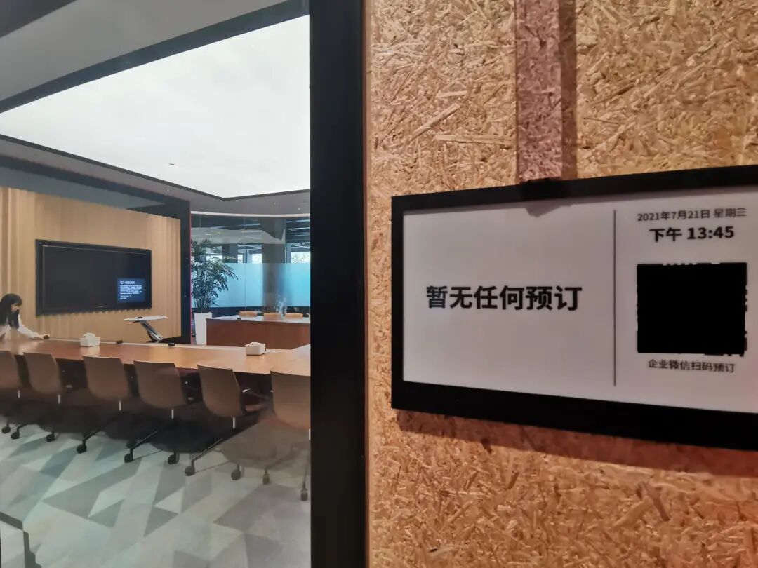 另外,心动还有自己的会议室预约系统,扫描会议室门口水墨屏上的二维码可直接预约。