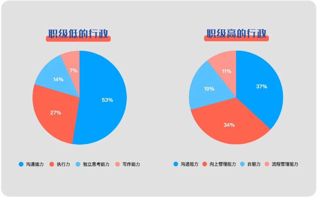 另外,职级越高的行政,对能力的培养也会有所侧重。除了所有行政都需要具备的沟通能力外,他们往往更注重向上管理的能力、自驱力、流程管理能力的培养。超半数的行政看好行政行业的未来发展,并且有70%以上的行政表示不会转行,准备继续在这个行业里深耕。他们认为: