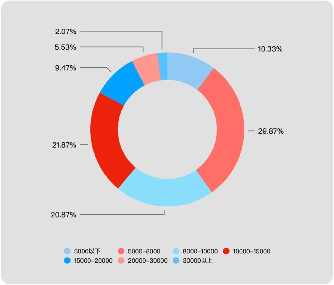 从所在行业来看,新经济行业行政薪资高于传统行业。其中,地产业、互联网行业行政呈现高薪资状态(月薪20k以上),服务业的低薪资人数要高于其他行业(月薪5k以下)。