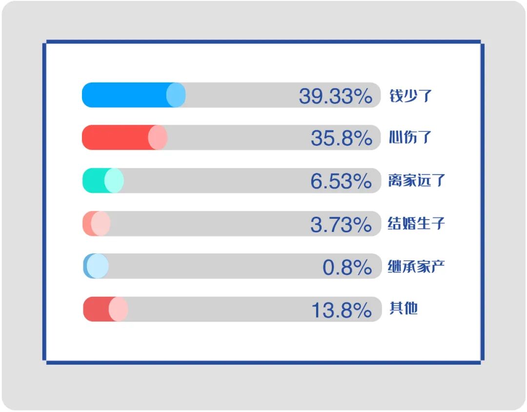 从整体来讲,行政行业的人员较为稳定,1年一跳和想跳就跳的总和占比仅有10.53%,大部分行政选择3-5年一跳,而3-5年正是行政在深入了解公司后大施拳脚的黄金时期。工作年限越长的行政,对公司的「忠诚度越高」;行政新手的跳槽频率更高。在探讨想要离职的原因时,我们看到能够促使行政跳槽的两大原因依旧是是“钱少了”“心伤了”,而上班距离、人生角色变化的总体仅占10%左右,还有其他一些原因促使行政离职,如:公司氛围不好