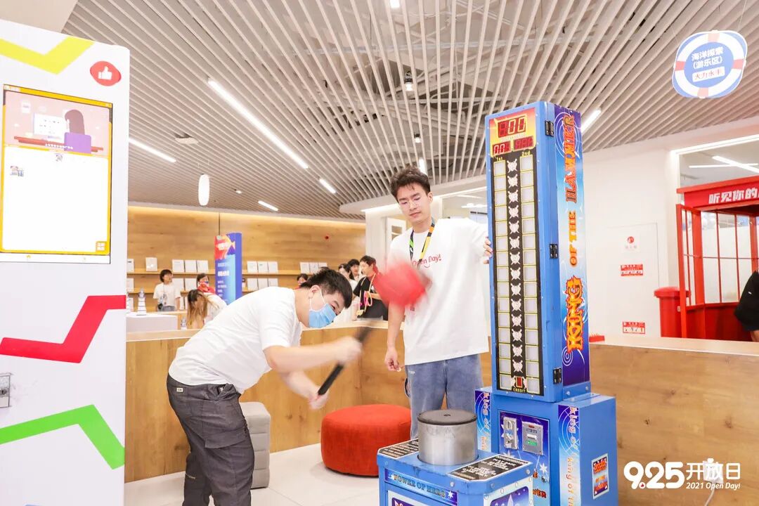每个游戏环节都跟「海洋」紧密联系。有的是名字相关:比如VR游戏「海底两万里」、比拼力气的「大力水手」、还有「海洋寻宝」、畅游海洋球池里的「赞er海底“捞”」...