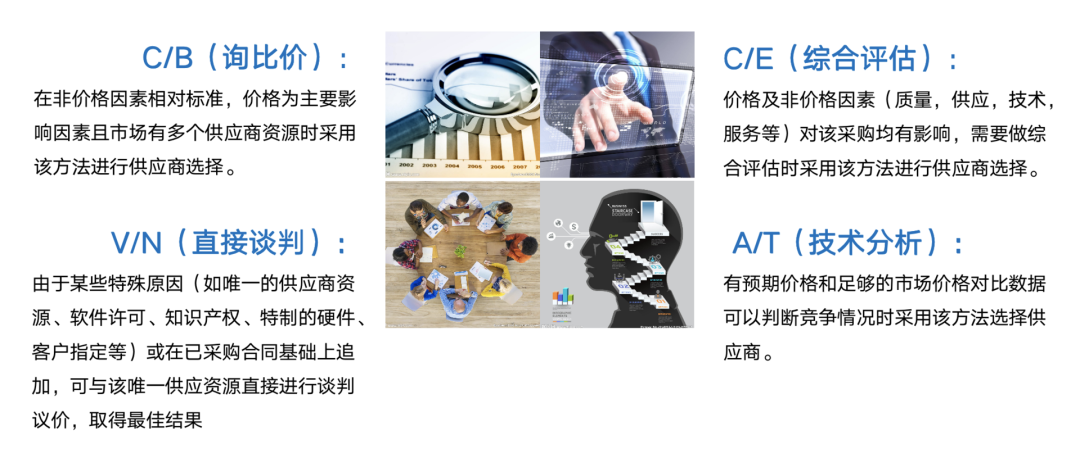 可以对企业性质、所属行业、发展阶段、文化特点、员工特点、发展对标等方面进行分析和总结,进而找到适合自己的供应商。比如联想在供应商入库后,会根据采购项特点采用询比价、综合评估、直接谈判、技术分析等方法来择选。
