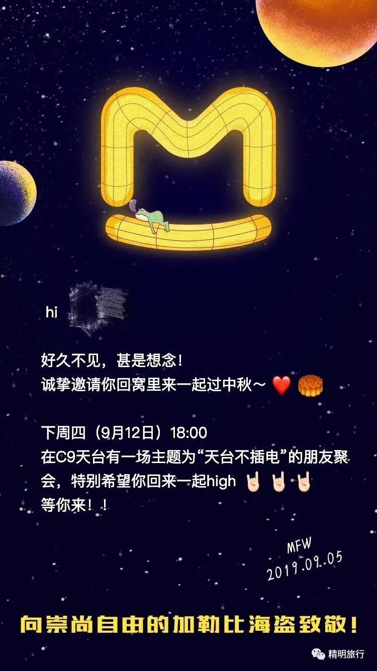 马蜂窝在中秋节时,特别准备了一场“天台不插电”主题活动,邀请离职的员工回来一起过中秋。
