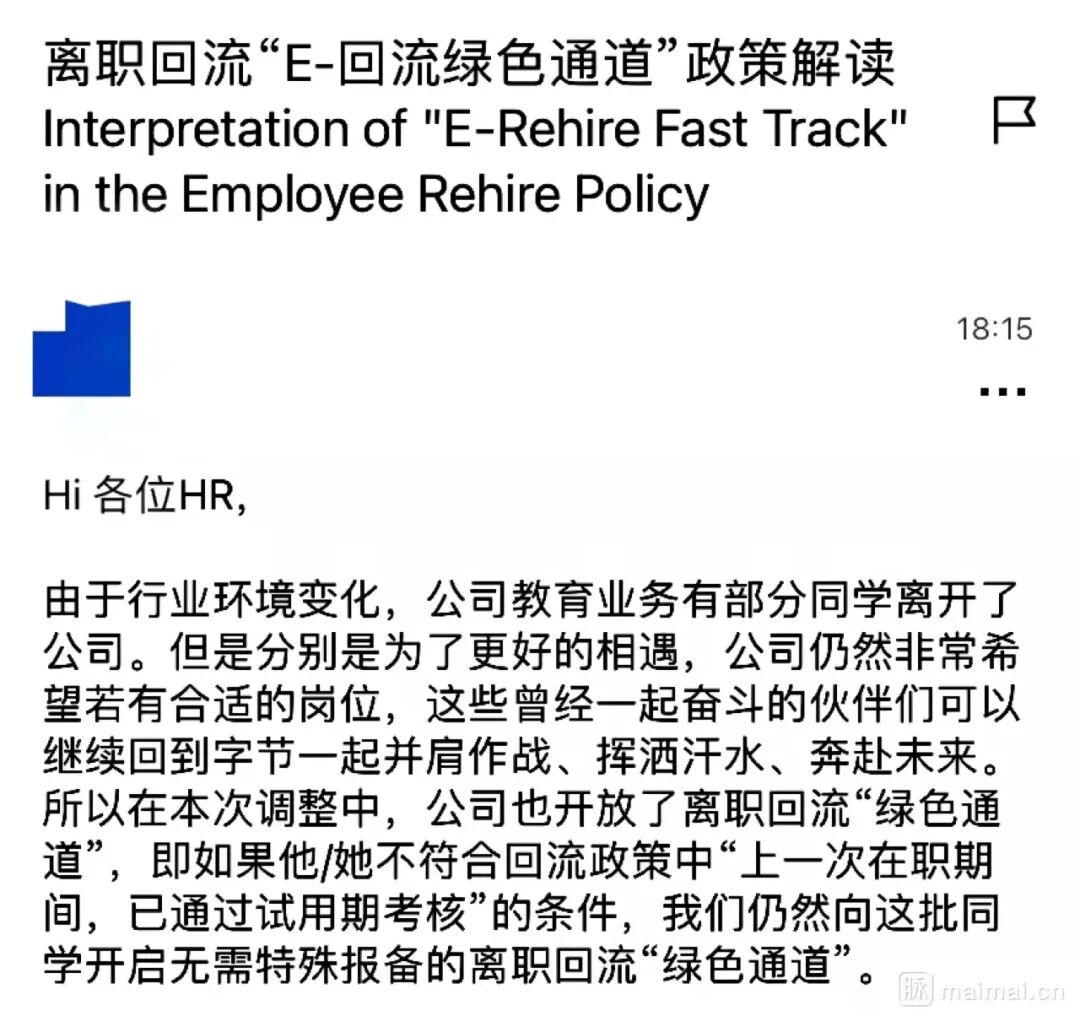 值得一提的是,字节跳动为教育业务中受“双减”政策影响而离职的小伙伴,还特别开通了“绿色回流通道”,可继续投递其他业务线的岗位,体现了公司对人才的尊重。