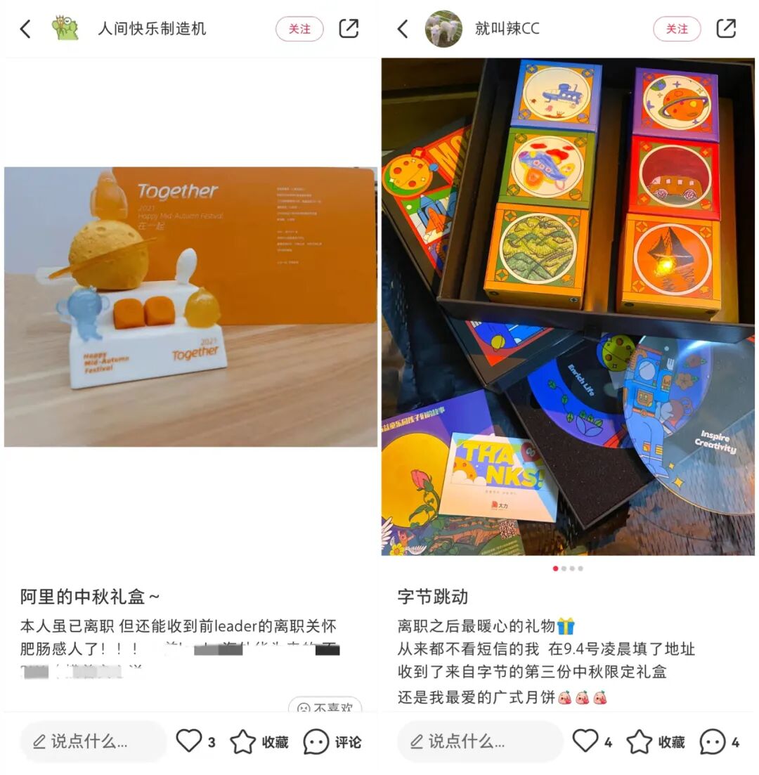 阿里巴巴、字节跳动等公司,也都会为离职的员工邮寄节日礼盒,送上与在职员工同样的节日祝福。