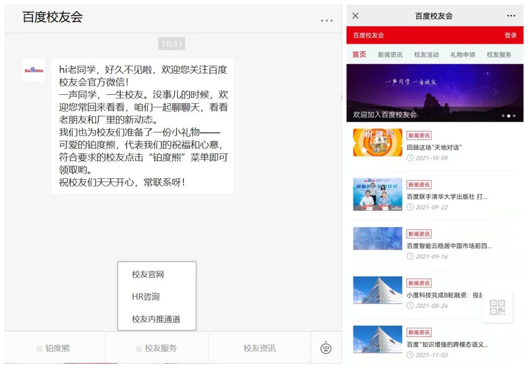 百度校友会集合了公司的新闻资讯,实时与老员工同步公司的最新动态,并且设有HR资讯入口和校友内推通道,为员工解决各项人事问题。