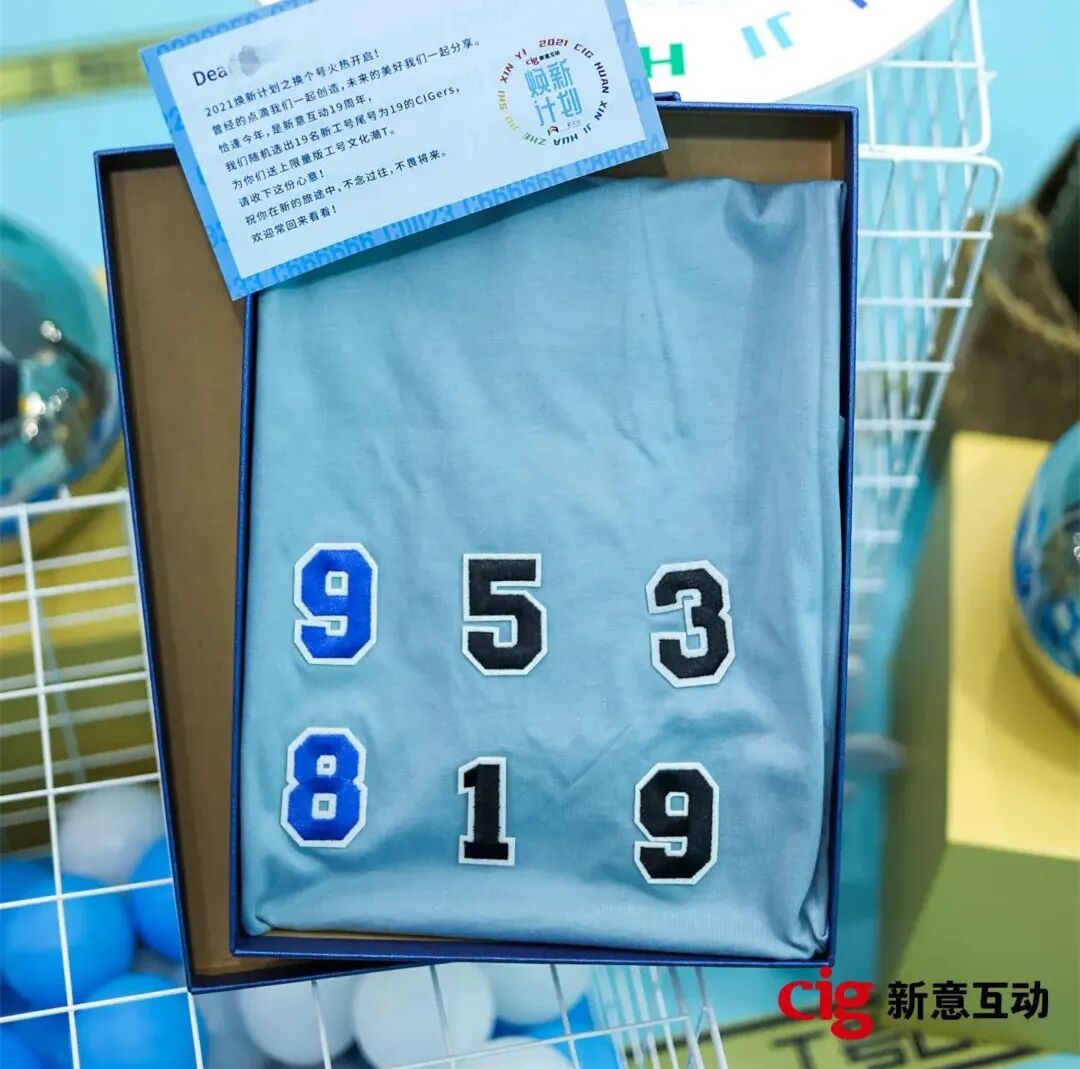 在新意互动举办了一次“换新计划”活动,目的是让员工可以自主选择或抽取工号。而在公司的离职文化中,有一条是为离职员工永久保留公号,这次活动中同样也给了离职员工选择工号的机会。并且恰逢19周年,新工号尾数为19的员工,还可以获得限量版潮T。
