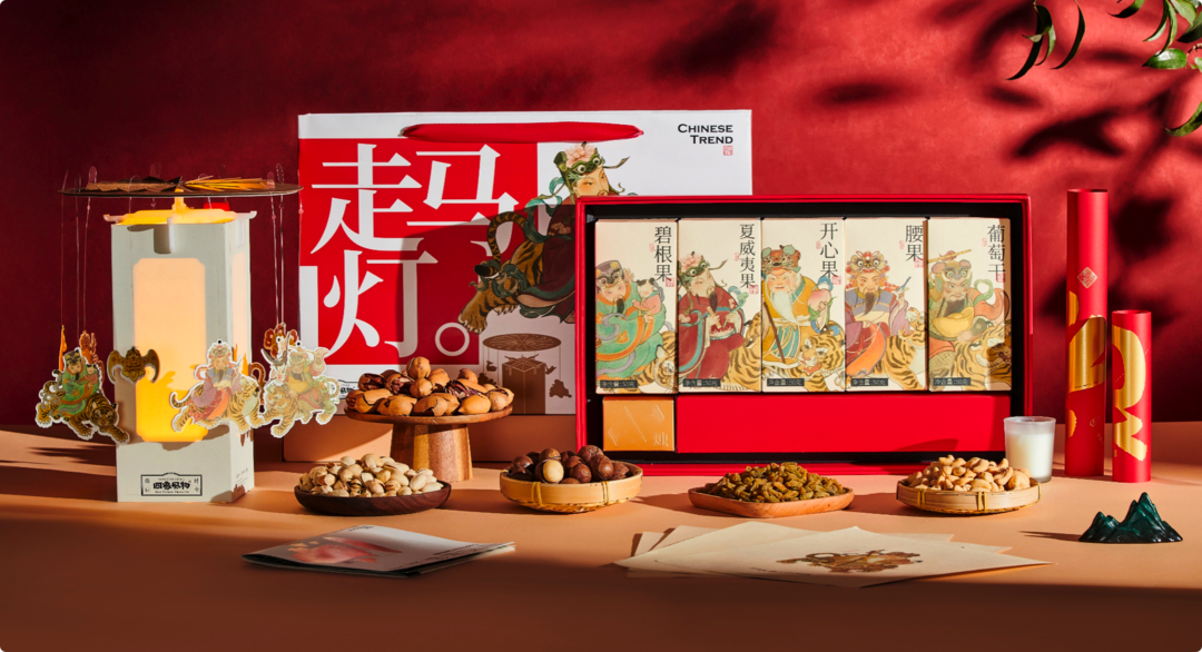 满盒坚果,家庭聚会追剧必备;开盒舞龙立体插画还可以拆卸下来做台历使用,实用与创意兼具。