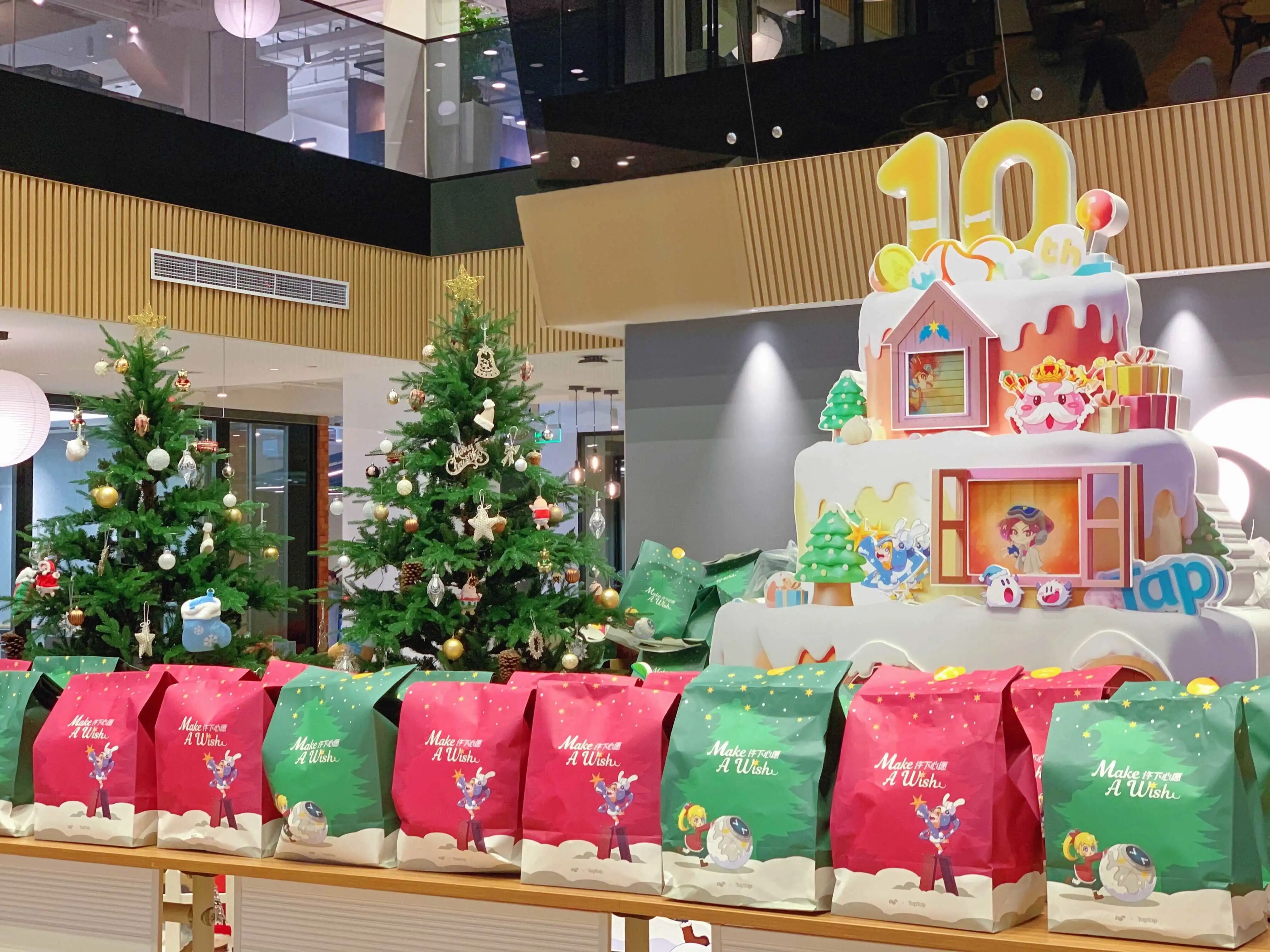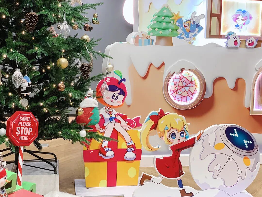心动用圣诞元素与公司形象相结合,打造非常有自己特色的圣诞节氛围,挂满装饰物的圣诞树和随处可见的卡通形象,一出现就非常吸人眼球!