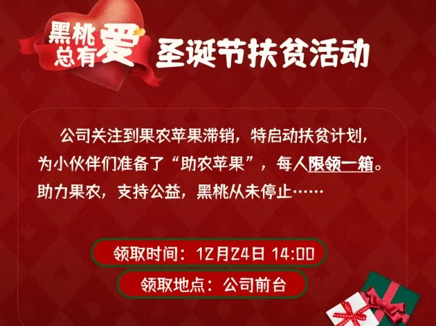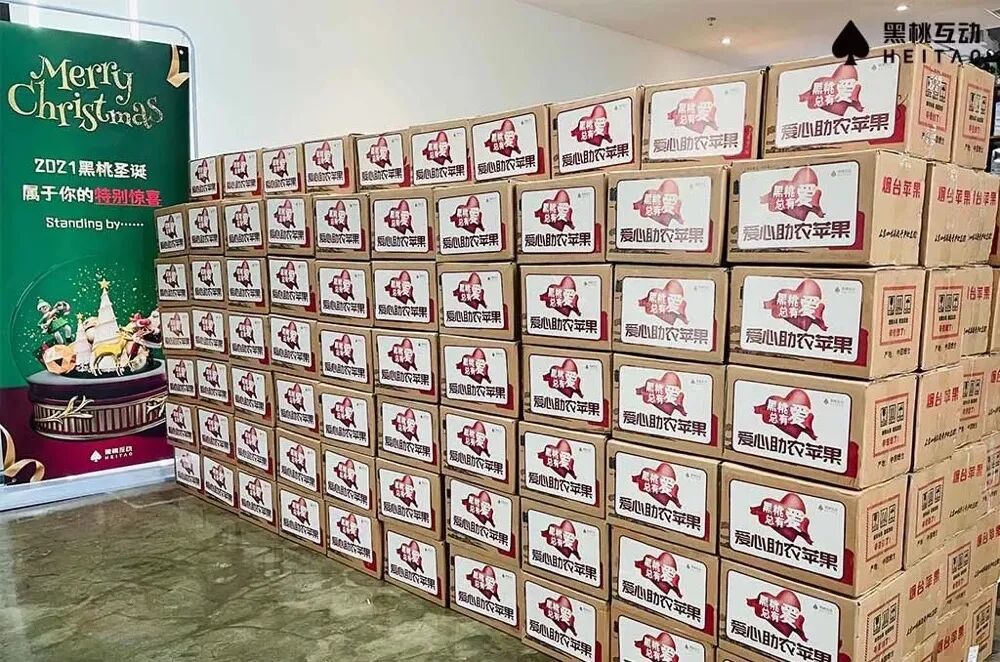 黑桃互动的圣诞节礼物太有意义了,启动扶贫计划,帮助果农处理滞销苹果,为员工每人准备了一箱「助农苹果」。