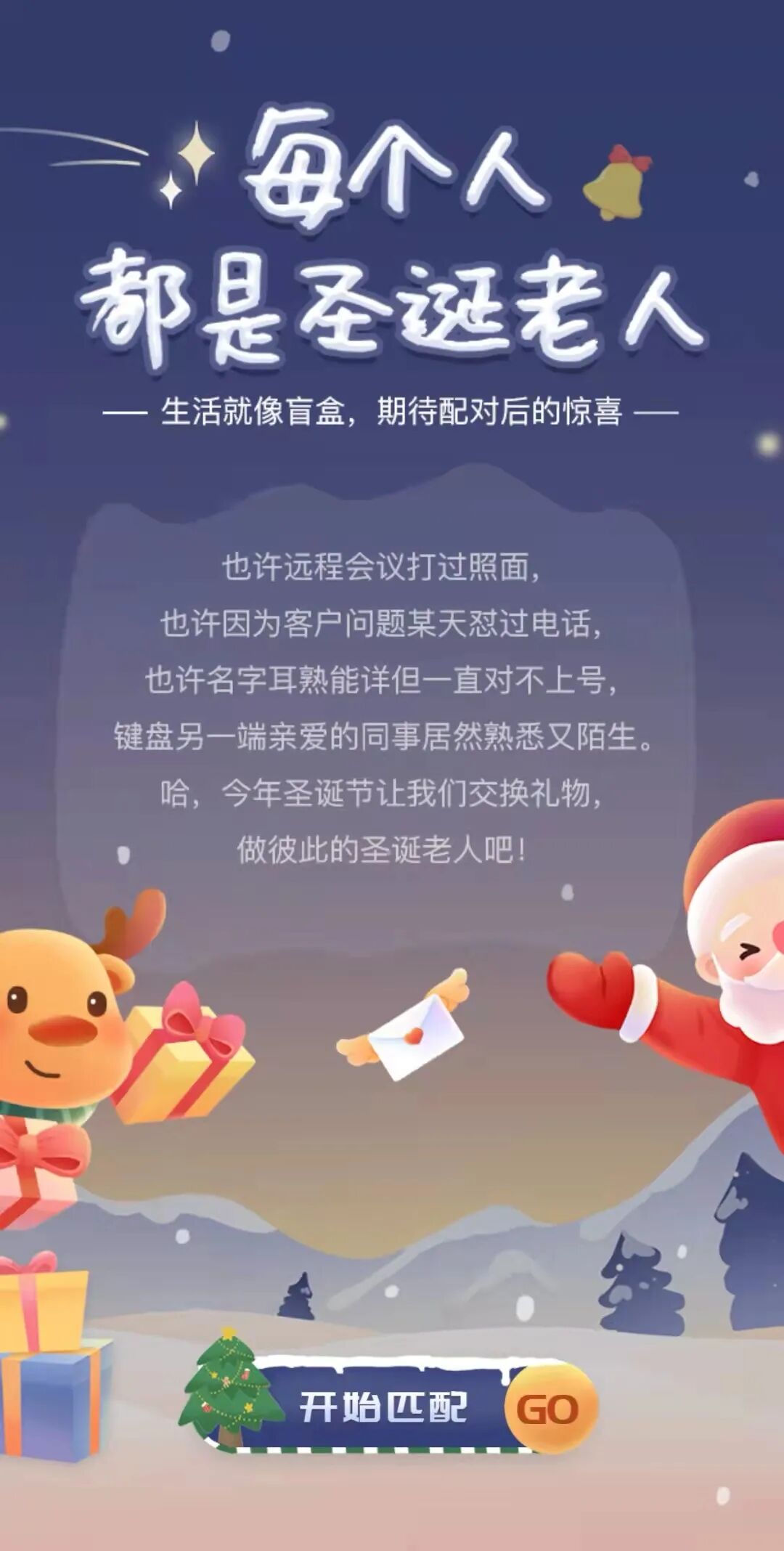 还在公司设置了「圣诞心愿邮筒」,只要将心愿卡投放到邮筒,就有机会赢取圣诞大餐&隐藏小奖品,还有盲盒形式的小惊喜「圣诞全员礼」~