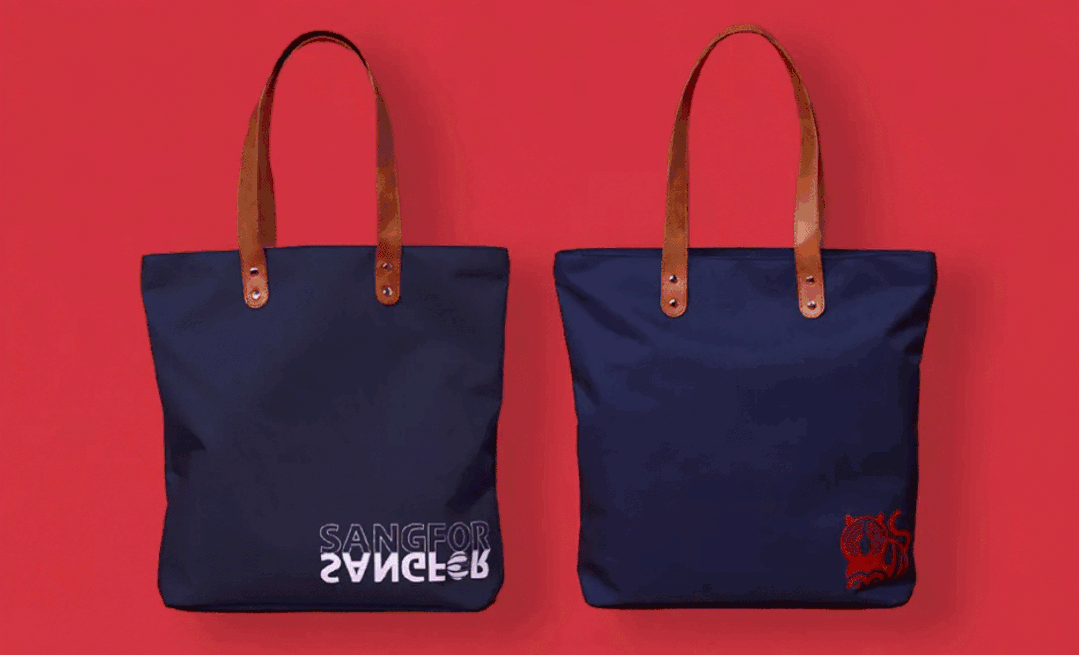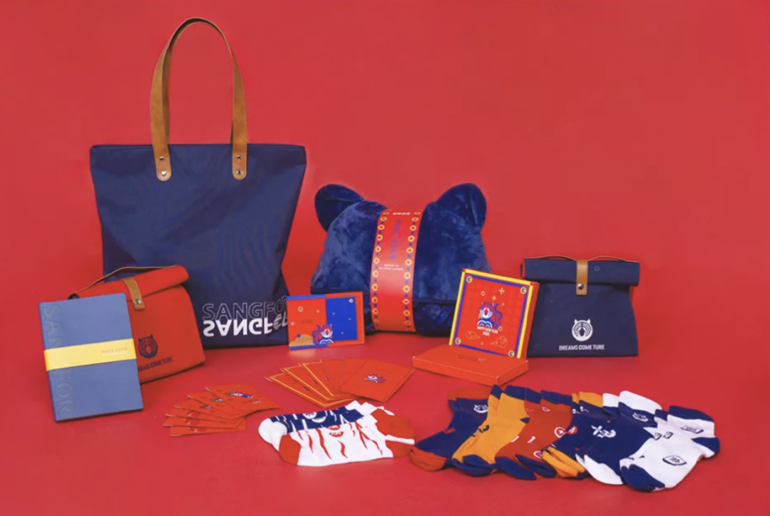 里面有SANGFOR定制托特包、红蓝cp收纳袋