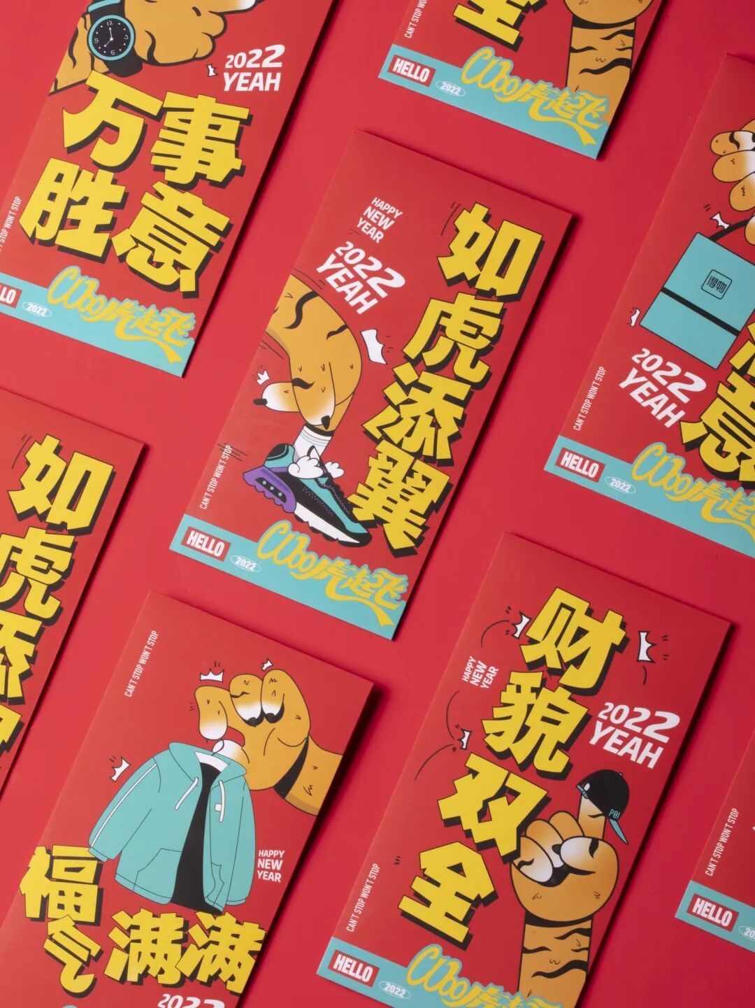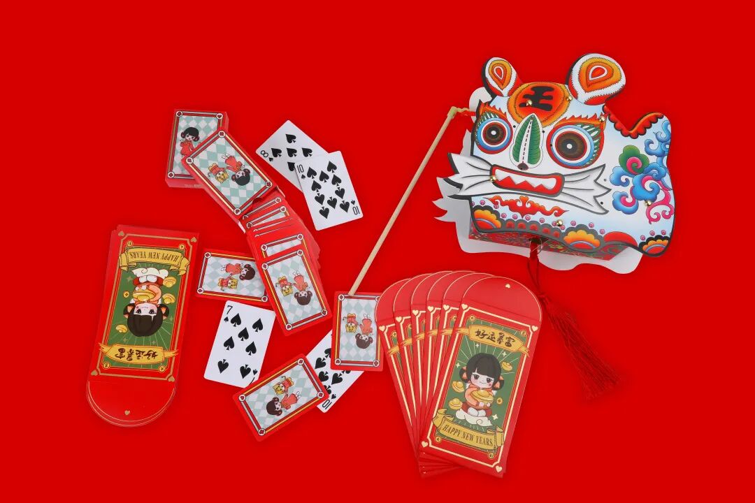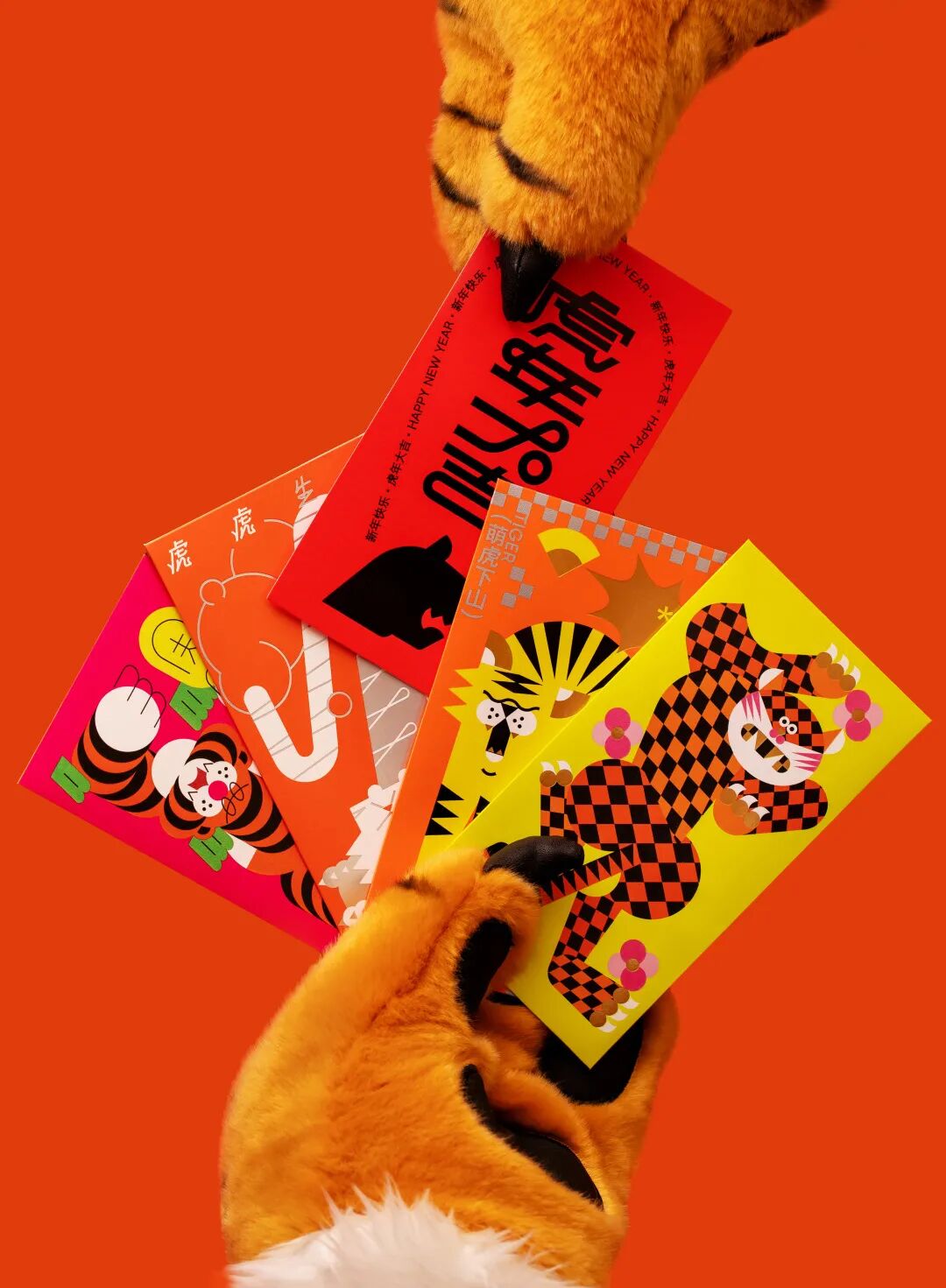 虎年红包、袜子套装、虎头帽毛毯、新年贺卡