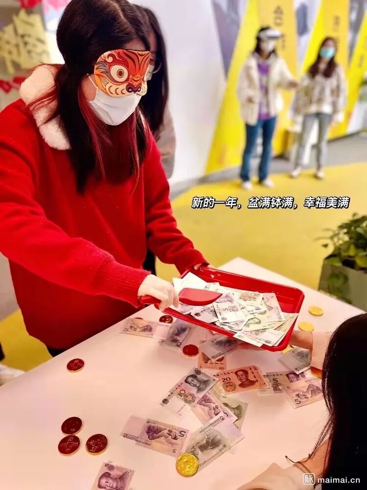其中有一款游戏很有新意「铲钱小活动」,蒙住眼睛用铲子铲钱,铲到多少有多少,也非常有意思了!