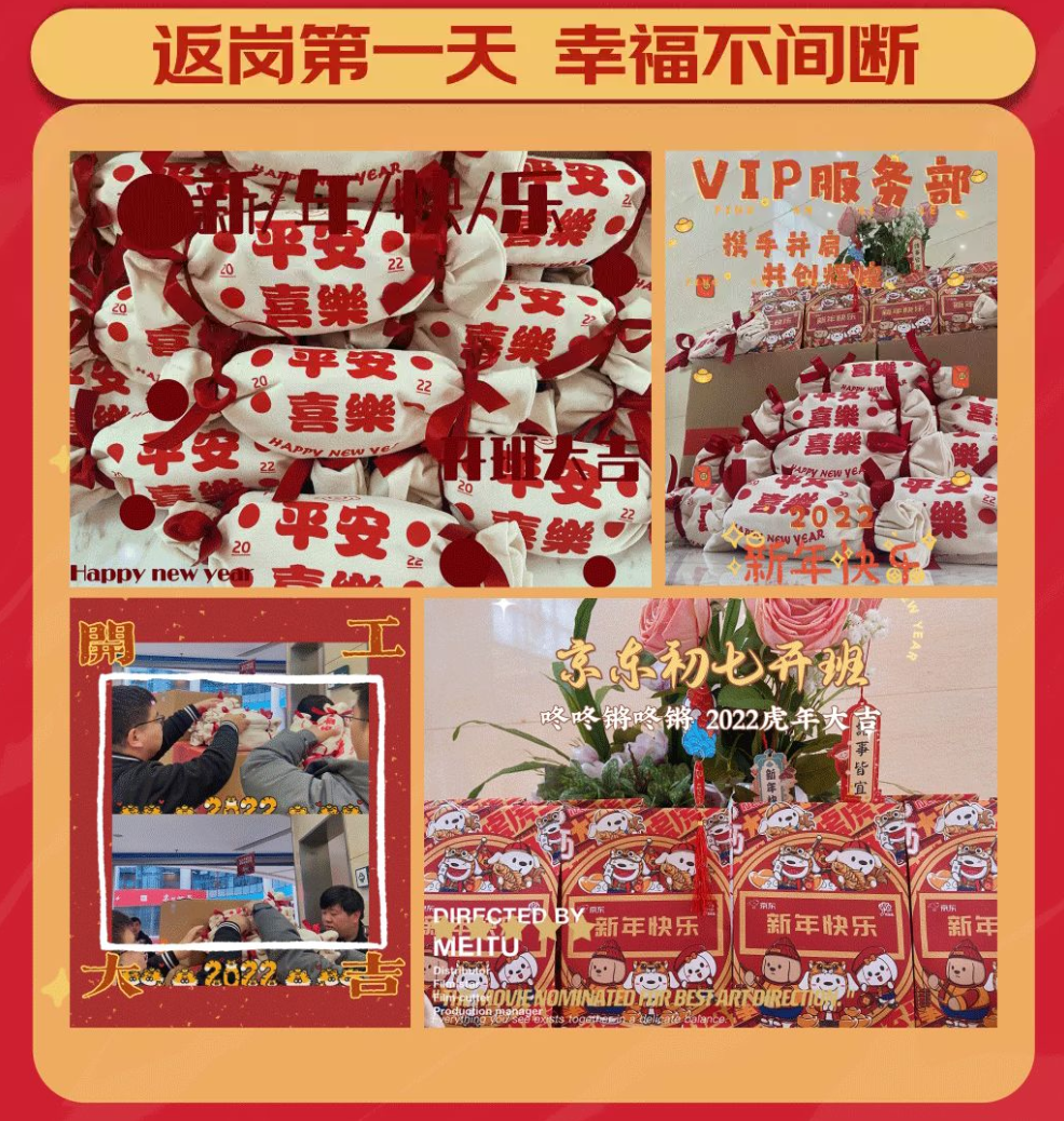 京东的虎年超幸「虎」开工仪式让人非常羡慕了,早上行政er为员工准备了开工大礼包,零食、糖果、帆布包、装着彩票的大红包!还有超实惠奖品!