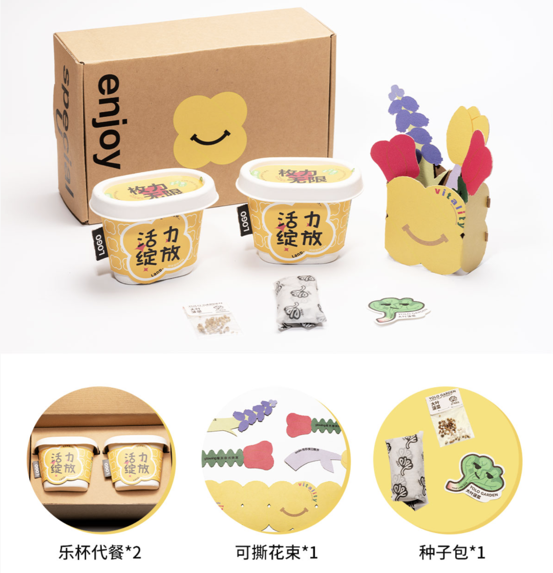 阿里的春种种子给了很多人灵感。这是一份兼具健康环保与生命活力的方案,不仅有健康代餐,可以DIY,还内含种子包,喝完洗净有乐杯,可以泡发泥土和种子,种植花草,让女神们和花草一起感受春天的到来。