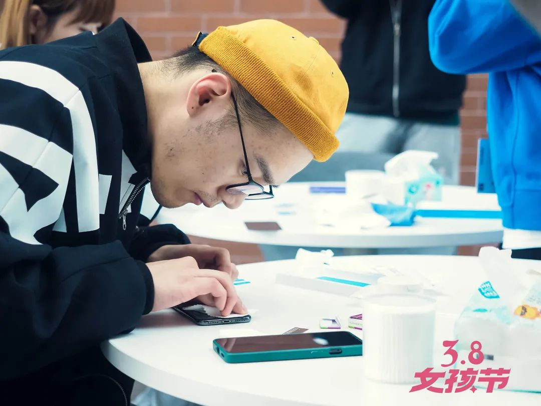 而得物行政部和他们的95分团队就曾联合开展数码服务——免费贴膜,给女童鞋们的爱机换新衣。