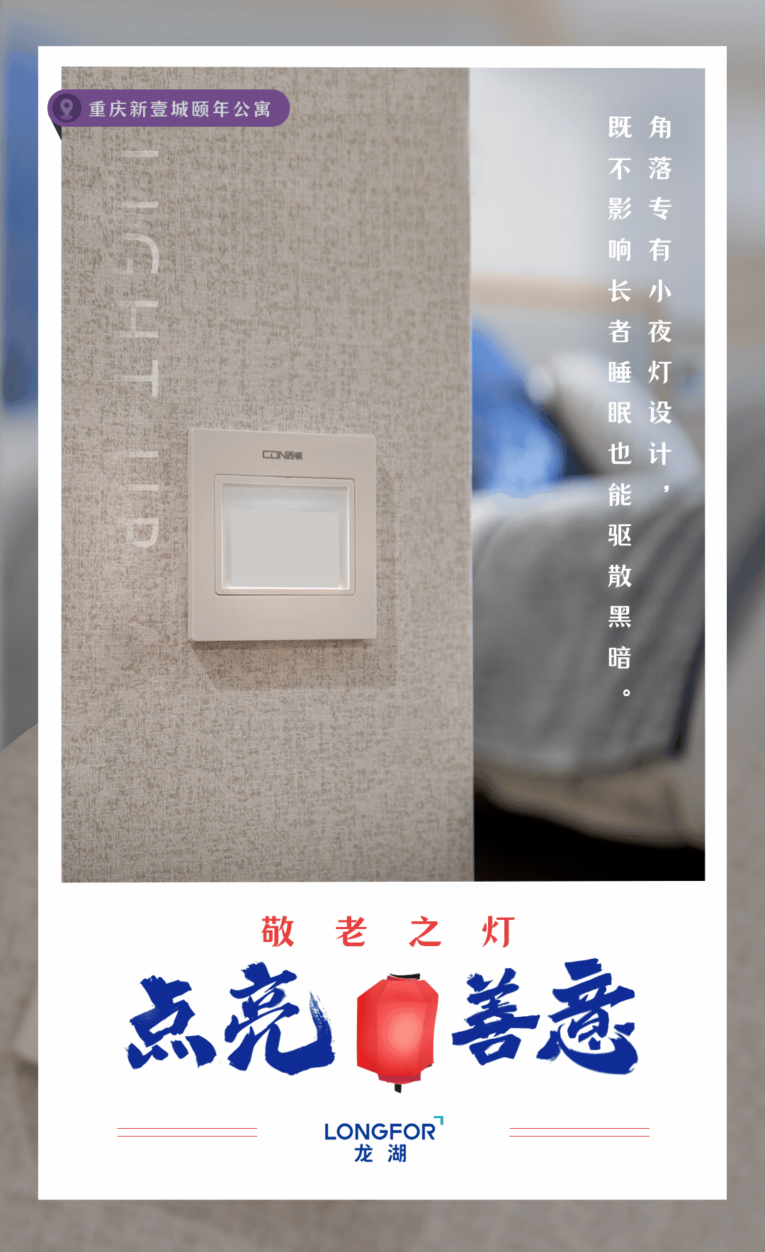 有浪漫之灯、善待之灯、欢乐之灯、温暖之灯、极速响应之灯、信任之灯、智造之灯、更新之灯、敬老之灯、佑幼之灯!龙湖融种种美好,将善意点亮!