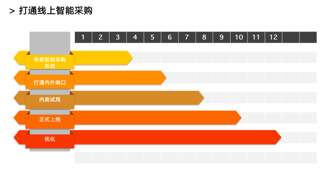 你需要将之前制定的执行策略进行拆解,通常来说要将任务拆解到每个月,这部分最好是以表格或甘特图的形式展示,按照1-12月的顺序,将每个月要达成的目标写上去。