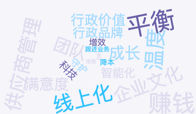企业所在行业仍然欣欣向荣,行政部的关键词可能是行政品牌,持续让公司看到行政的价值,或是提效,继续探索如何提高企业效率...