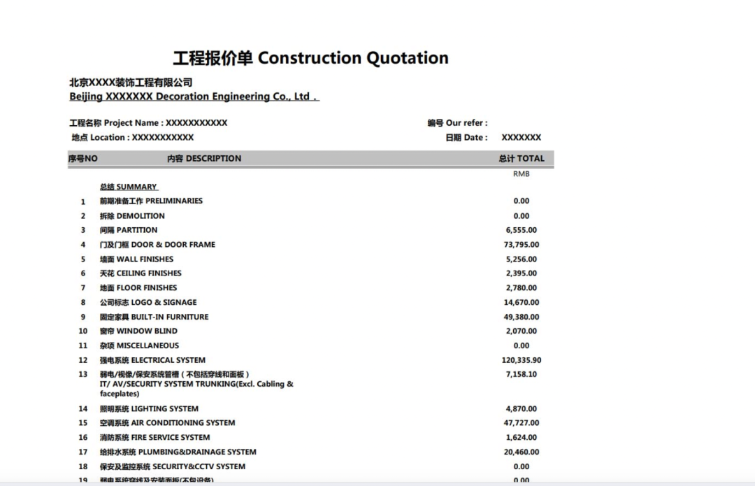 ● 报价与行情是否匹配,材料价格是否正品可寻源,是否有自有施工团队;