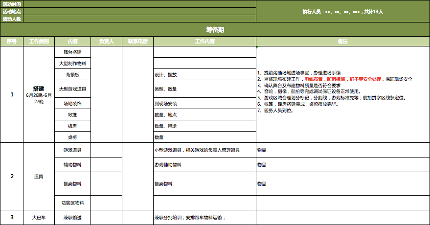 ①、根据团建活动流程准备相应物料: