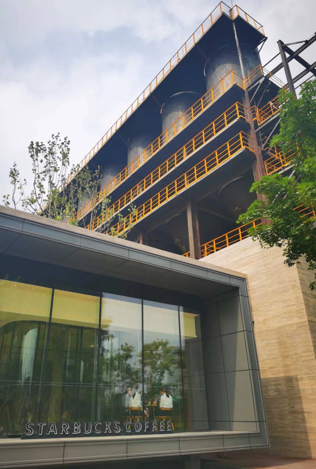 坐落于满是钢筋水泥混凝土组成的巨型机械与建筑之间,抬头就能看到高炉,咖啡店建筑本身也保留了钢铁厂的原设备和结构,工业与现代碰撞的风格十分酷,这里也早已变成了网红打卡地。