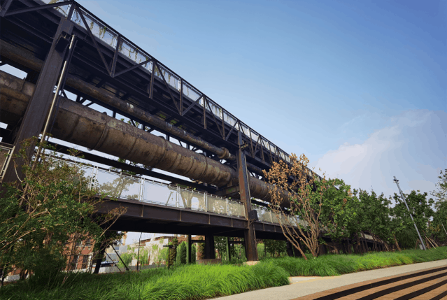 工厂外迁后,经过改造惊艳转身变成了工业风的遗址公园,那些曾经创造过辉煌的烟囱、厂房、运输管道转而变成了令人惊叹的特色景观。