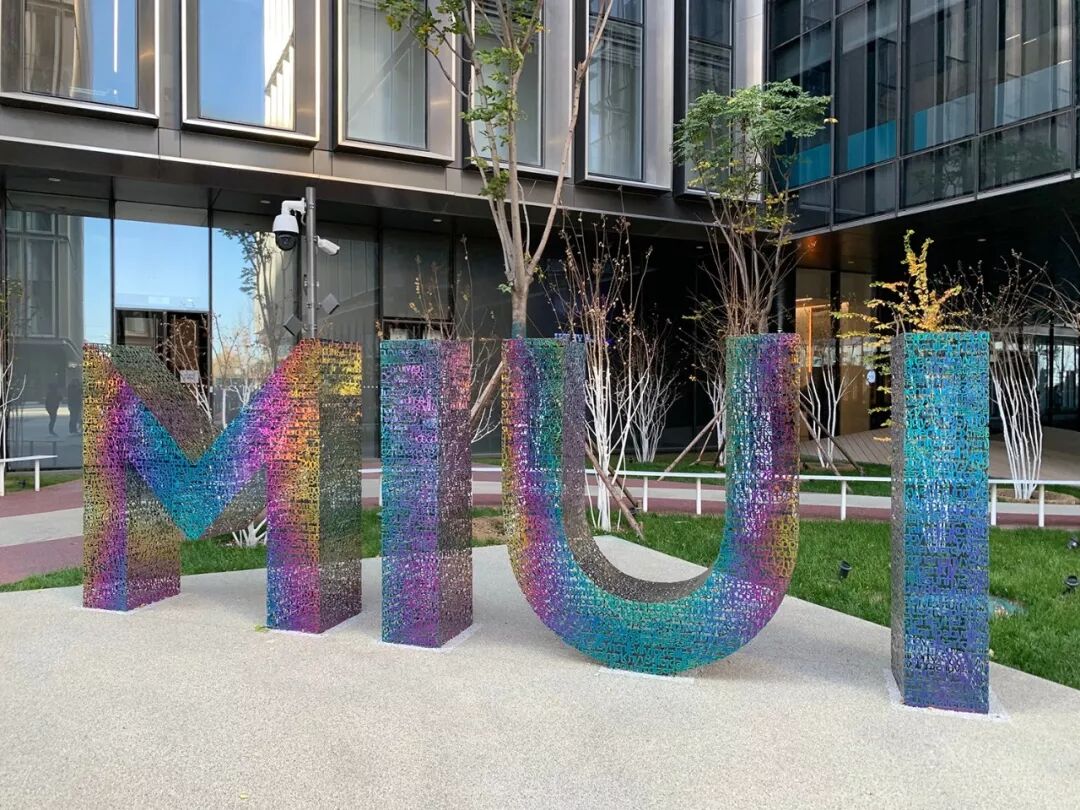 园区内各种米兔形象随处可见,楼宇转角处还隐藏着一片会发光的米兔森林!它用镜面不锈钢人工锻造。其中,最大的米兔象征着小米的初心,通过镜面反射衍生出大大小小的米兔,代表小米的成长和对未来预见性。