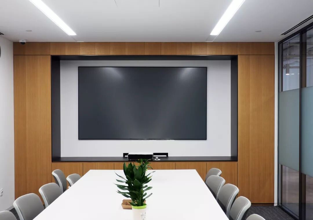 ↑ 会议室里的小米投影仪和超薄电子显示屏