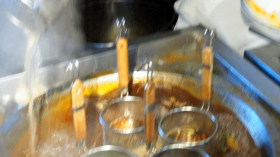 酸辣粉还在锅里煮着就已经很诱人了,把小料拌匀,嗦一口,酸爽的感觉只有吃过才知道。