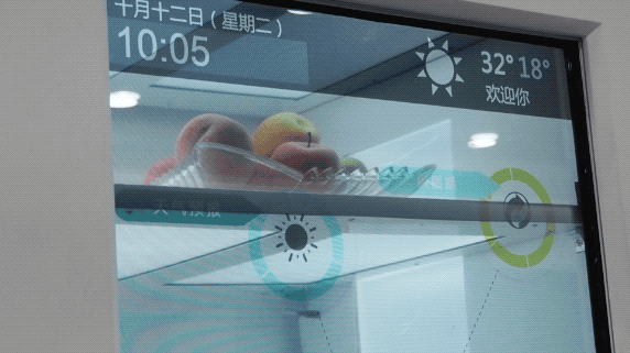 京东方的企业展厅里有公司最高端产品的展示与现场体验,带显示屏用琴键控制的钢琴、可联网看视频及物品过期提醒的智能透视冰箱门...等。