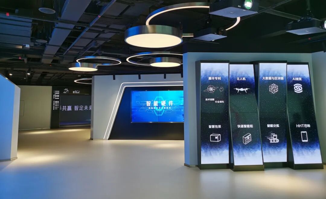 比如顺丰位于深圳创智大厦办公区的展厅,共分为6个小空间,相互以智控移动门分隔起来。参观路线采用了U形的设计,贯连整体空间。终点通向商务接待区,既可以让访客参观完直接进入商务环节,同时也保留了私密性。
