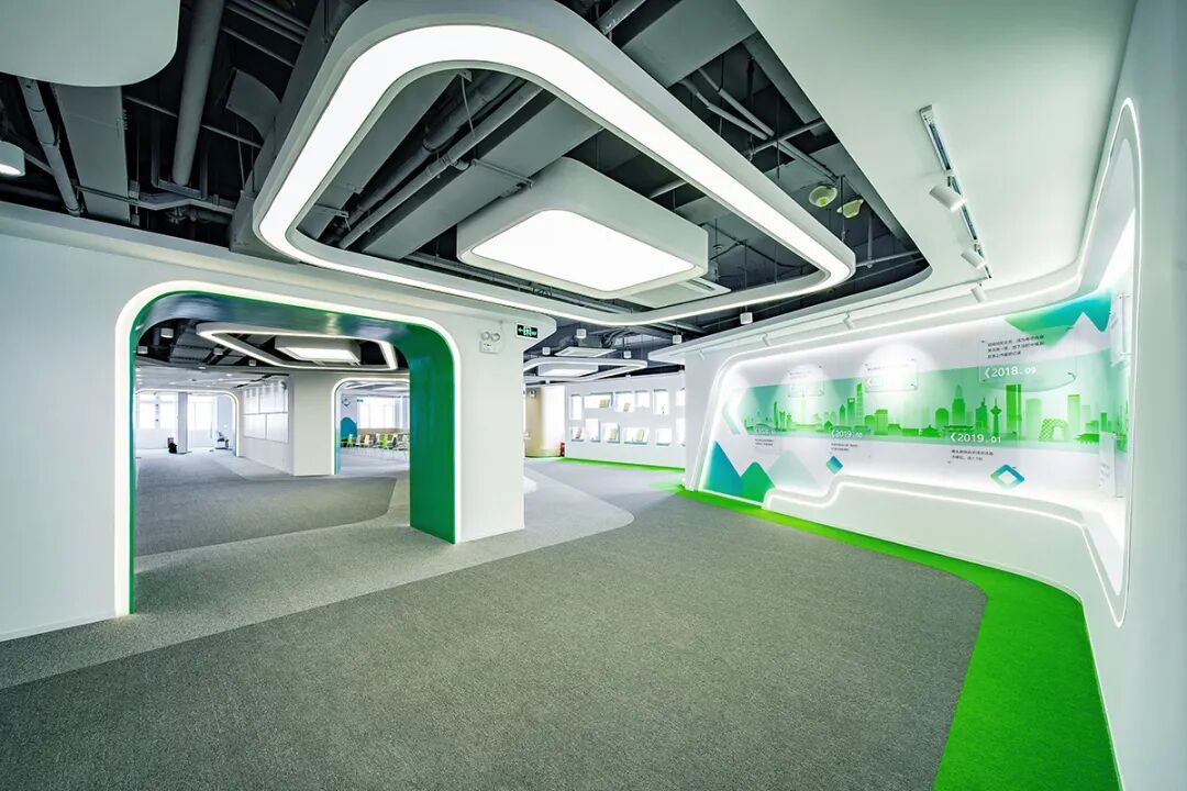讲解公司发展历史文化的展厅,如果空间足够大可以结合发展阶段规划路线,让参观者在深入了解文化的同时,身处位置上也有空间递进的效果,加深体验。
