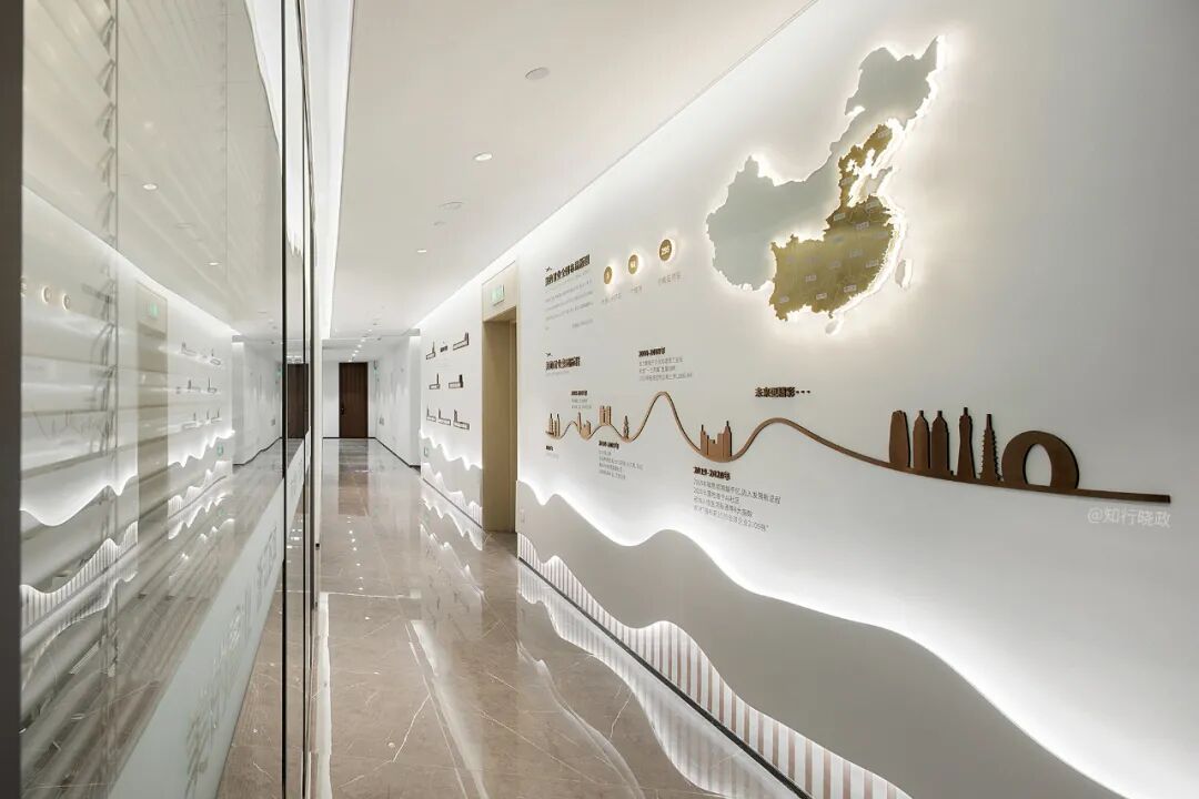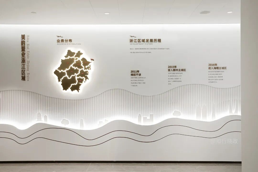 美的置业浙江区总部用一条波峰曲线串联他们的发展历程,以建筑开始,以建筑延续...