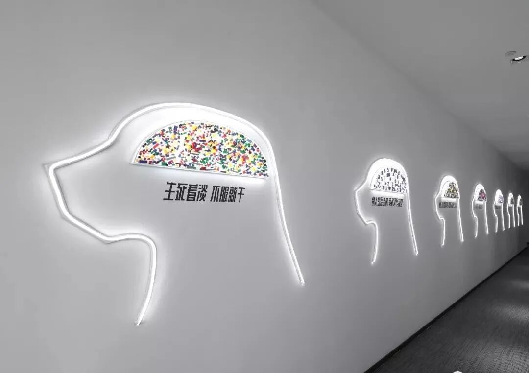 企业logo、吉祥物本就代表着文化的一部分,结合他们打造出来的文化墙有趣又亮眼!