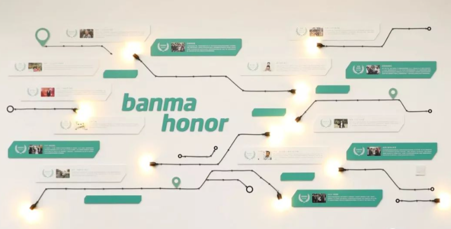 斑马网络员工荣誉墙用各种折线串联起优秀员工的故事,用线条顶端点亮的灯照亮他们的光辉时刻。