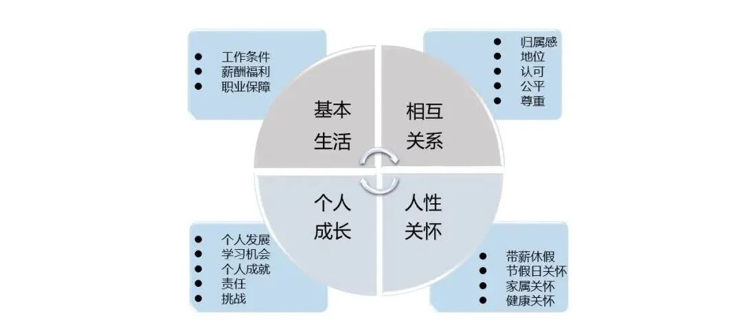 依旧以去哪儿为案例,他们的三大关键词是怎么来的呢?是基于对员工基本生活、相互关系、个人成长及人文关怀需求的深刻洞察。