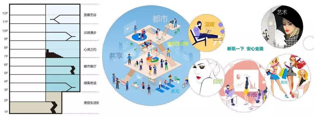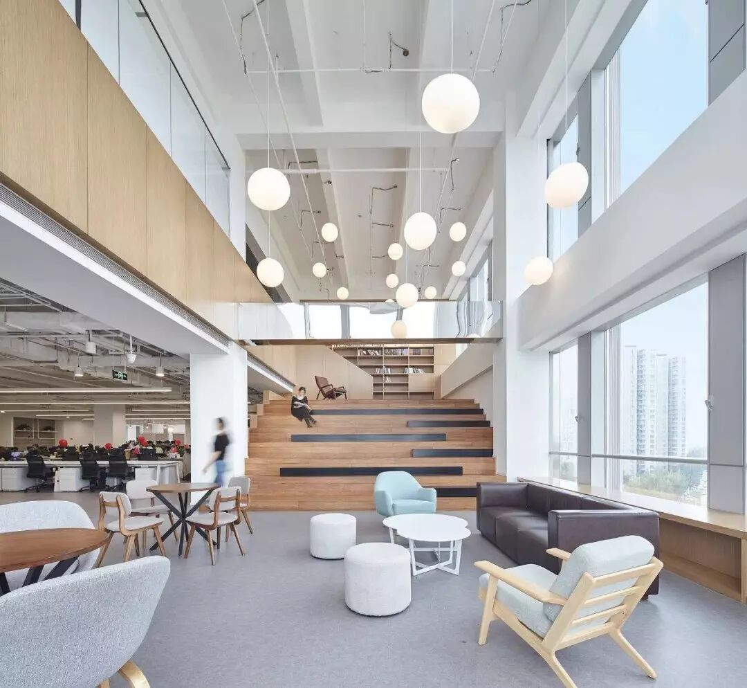 为了传达「舒适温暖、积极自信、时尚艺术、活力阳光」的文化氛围,办公楼每两层的贯穿空间被设计成了不同主题的公共空间,更好地满足了用户的个性化体验,同时也是新氧探索多元化商业模式的体现。