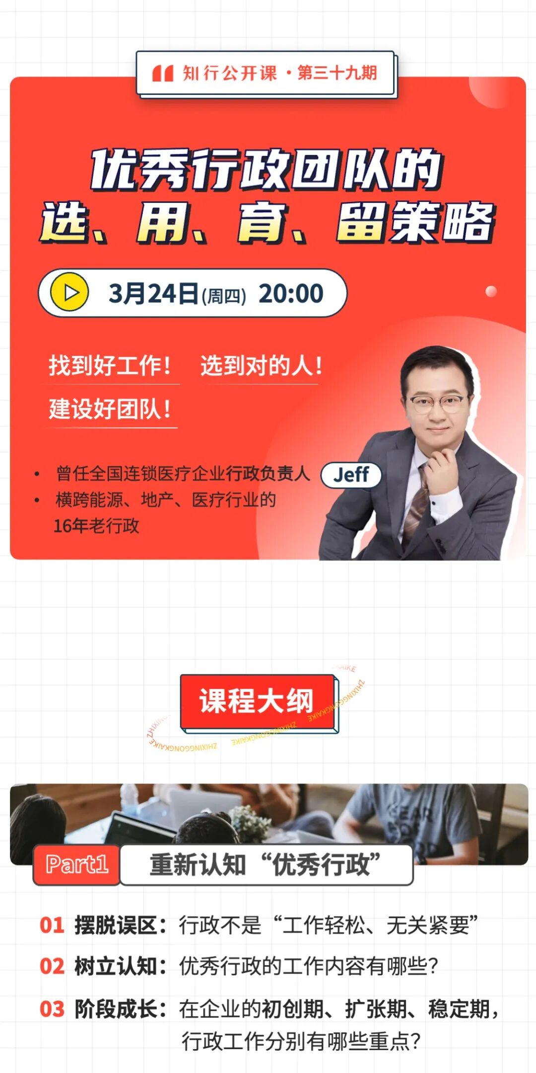 拥有16年行政经验Jeff老师,来和我们分享,在团队管理工作中,对于行政人才管理的心得与经验。