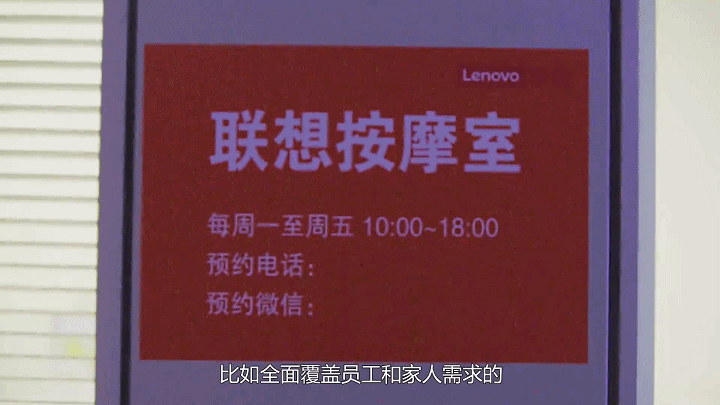 联想不仅有“健康室”,还有“按摩室”,能为员工提供中医按摩理疗服务。