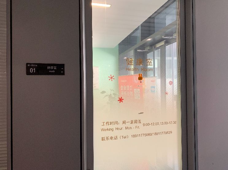 丁香园在办公楼设置了专门为员工服务的丁香医务室,每周五有医生坐诊且药物免费提供,每个部门还都有一个药箱,配有常备药品。