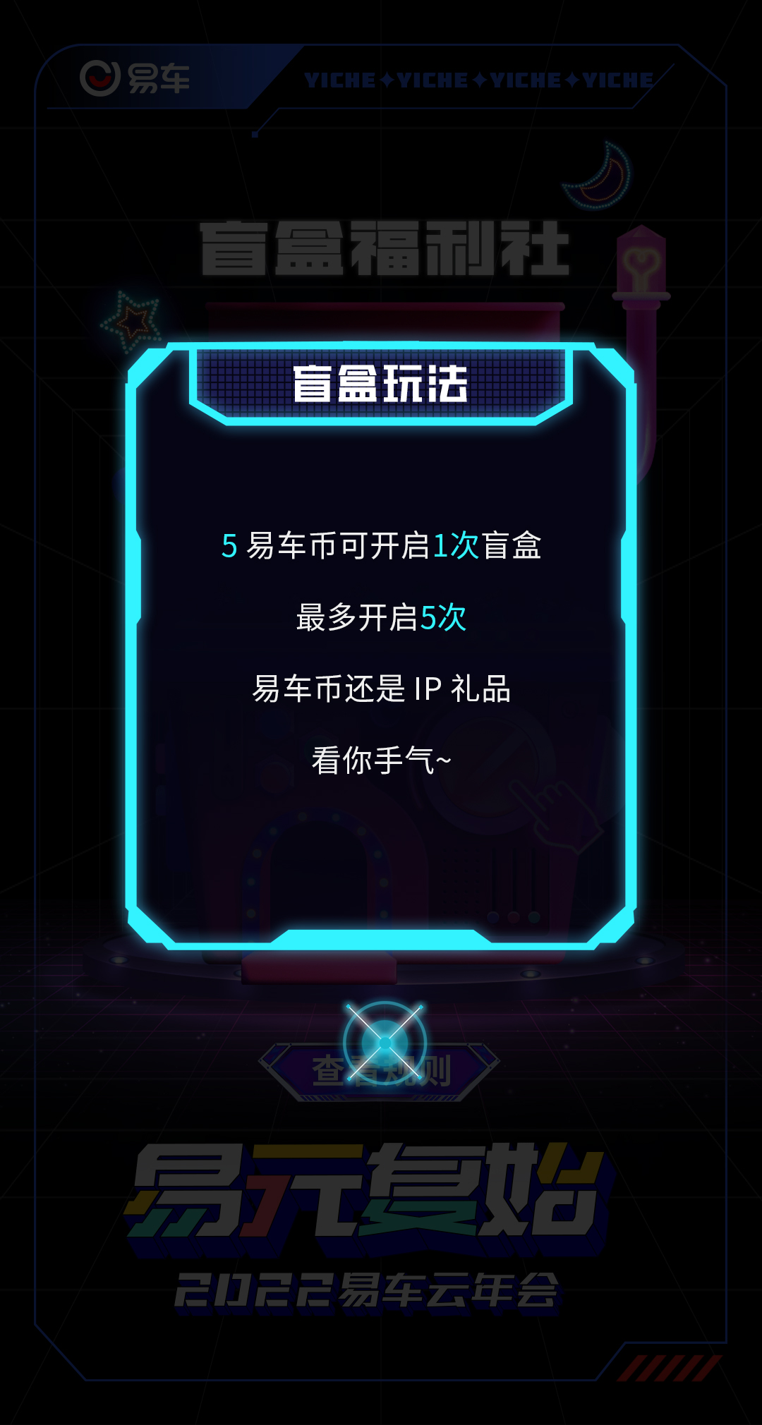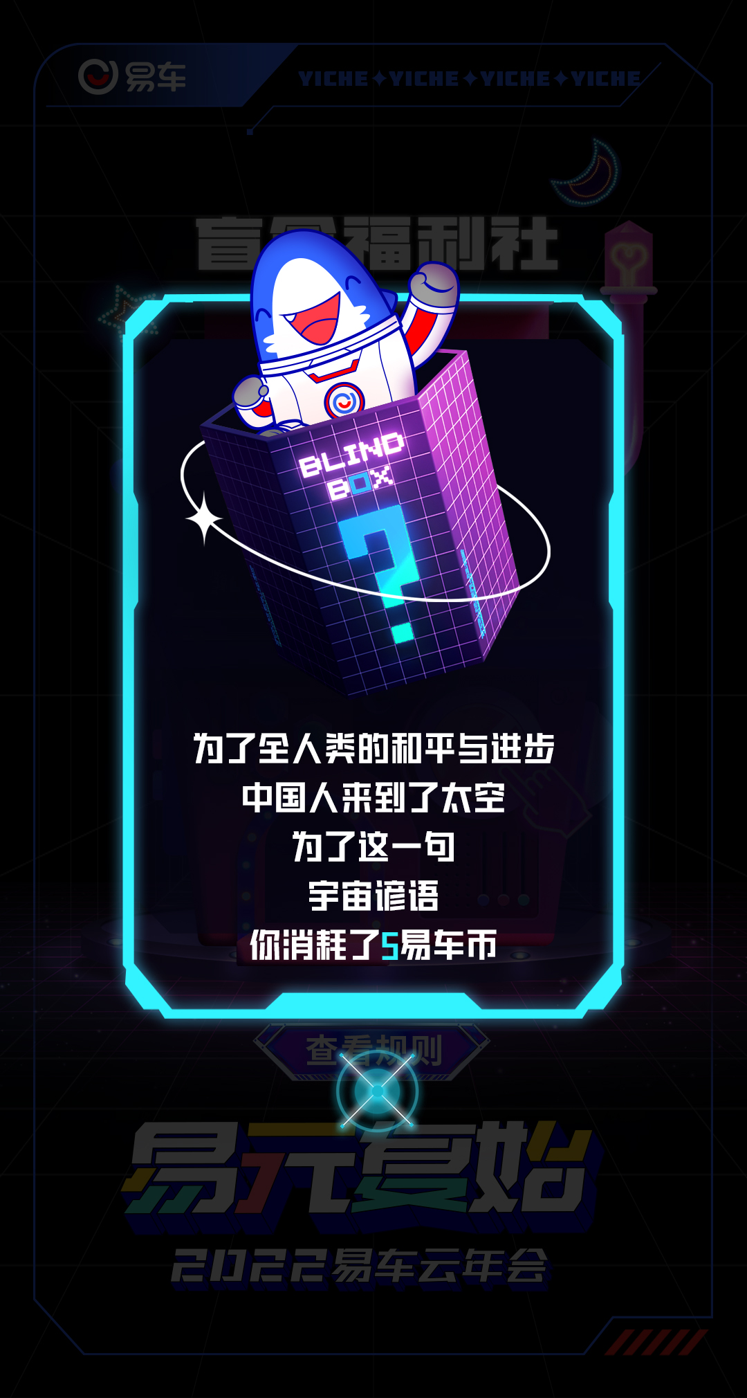在「意空间」,盲盒爱好者的福利来啦:5易车币可开启1次盲盒,最多开启5次,易车币还是IP礼品!